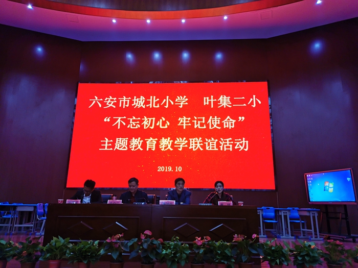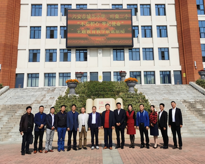 10月17上午,城北小学党总支一行在区委教育工委委员、校党总支书记、校长高兰的率领下赴叶集区二小开展“不忘初心 牢记使命”主题教育教学联谊活动。市教研室小语教研员严仍江,裕安区委教育工委委员、区教体局副局长李刚祥,区教研室主任许全安,叶集区委教育工委书记、局长王洪涛,叶集二小校长焦健等领导出席活动。来自叶集区200多名小语教师参加了教学观摩及研讨活动。