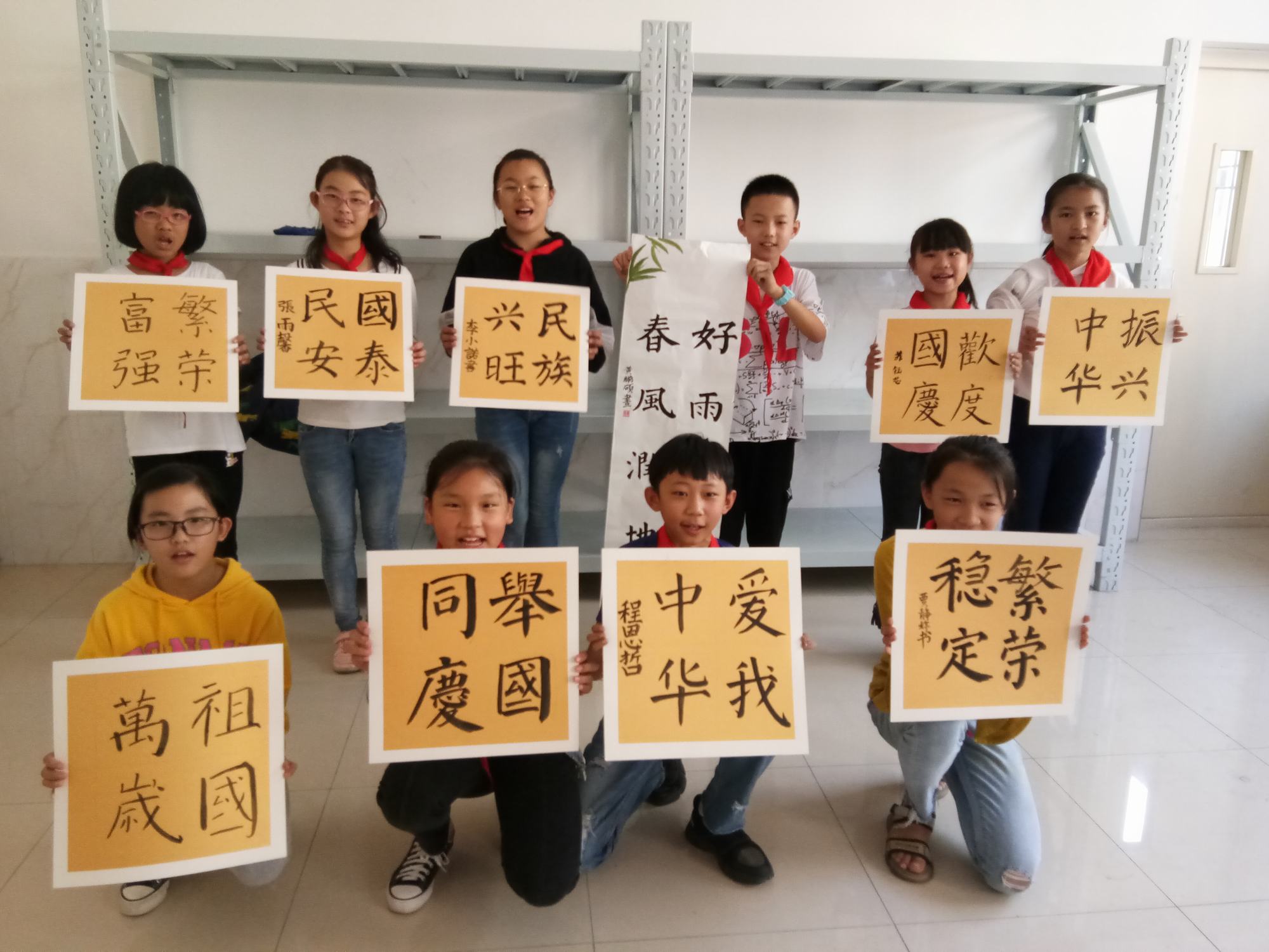 社团活动中,在老师的指导下,孩子们给祖国妈妈制作了精美的礼物。孩子们用他们灵巧的小手通过绘画、粘贴、书法等形式制作出他们心中最美的作品,表达了对祖国妈妈的挚爱之情。