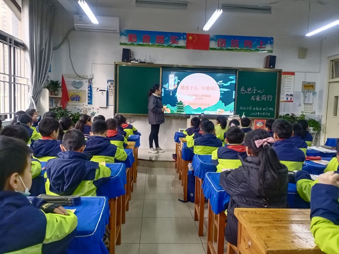 12月13日,我校四(3)班荣发晔同学在国旗下做了《珍爱和平,感恩生活》的演讲。带同学们一起牢记祖国人民曾遭受过的苦难,缅怀英雄人物,感恩现在的幸福生活,倡导同学们一起不忘使命,刻苦学习,为实现中华民族的伟大复兴做出自己的贡献。