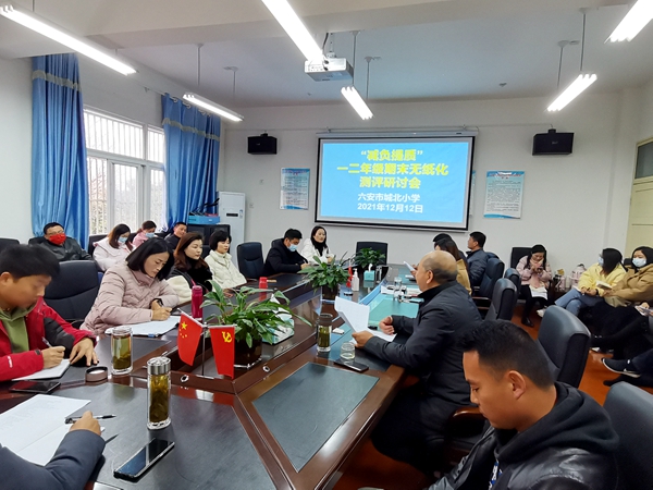 为积极推进“双减”政策落地生效,促进学生全面健康发展,培养学生的创新思维和实践能力,严格落实作业管理要求,12月12日下午,六安市城北小学、城北小学西校区、城北小学清溪路校区相关科室负责人及一、二年级年级部主任召开“一、二年级期末无纸化测评”研讨会。