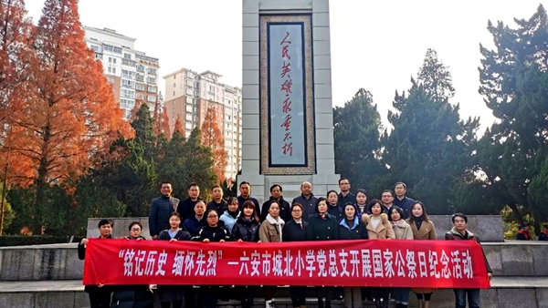2021年12月13日是第八个国家公祭日。为缅怀先烈,铭记历史,六安市城北小学党总支在皖西烈士陵园开展了“国家公祭日”纪念活动。裕安区委教育工委委员、城北小学党总支书记、校长高兰,部分党员教师和少先队员代表参加活动。