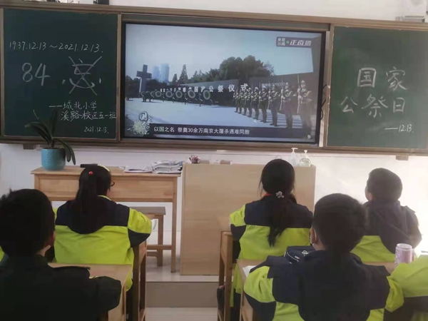 观看国家公祭日视频也登上了纪念荧屏。通过视频,学生们了解了设立国家公祭日的远大意义,明白了国耻不能遗忘,国史不容篡改,懂得了当下的幸福安康来之不易。
