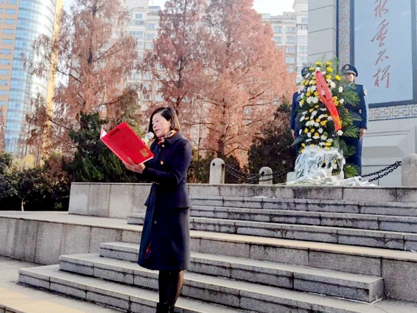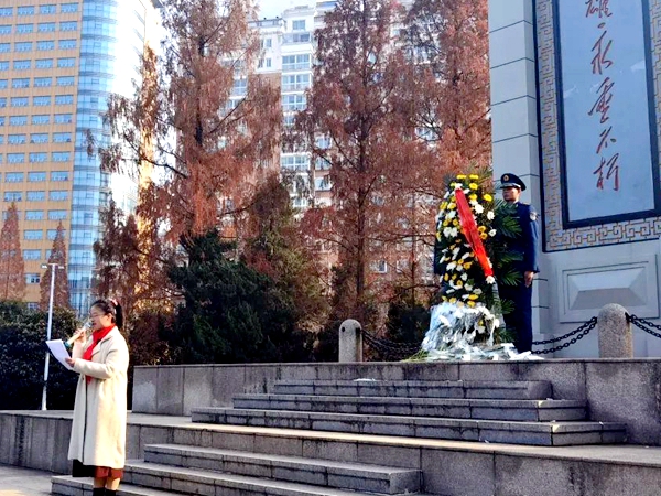 下午两点半,六安市城北小学党员教师代表、少先队员代表与中国人民解放军94639部队官兵代表于皖西烈士陵园举行公祭仪式。仪式前,少先队员代表为官兵代表献戴红领巾。紧接着,在庄严肃穆的人民英雄纪念碑前,全体肃立,奏唱《中华人民共和国国歌》。国歌唱毕,全体人员向烈士默哀,表达对烈士的无限哀思。