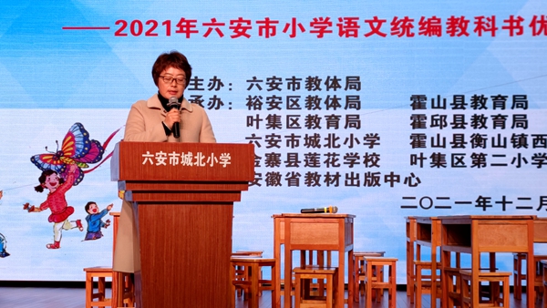 凛冬课堂多魅力,三尺讲台竞峥嵘。为进一步落实“双减”政策,深入开展统编小学语文教材教学研讨,助力教师专业发展,切实提高课堂教学实效, 12月18日,2021年六安市小学语文统编教材优质课教学比赛获奖优质课暨名师教学展示活动在六安市城北小学演播厅隆重举行。裕安区教体局副局长李刚祥,裕安区委教育工委委员、六安市城北小学党总支书记、校长高兰,裕安区教体局教研室主任许全安,各县区小语教研员,市小语会领导、专家,各承办校负责人出席活动。六安市城北小学三校区语文老师及小语爱好者现场观摩,线上线下共有近5千人参与活动。活动由六安市城北小学教育集团河西小学教科室副主任倪成成主持。