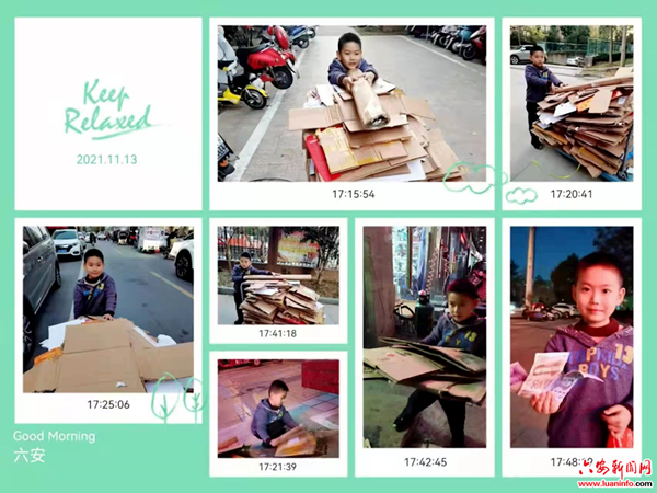 连日来,城北小学二(5)中队的孩子们在自家的小区进行走访,调查、了解居民对垃圾的处理情况。同时,队员们开始收集可回收垃圾中的塑料瓶、包装箱,迈出变废为宝献爱心活动的第一步。随后,孩子们和家长一起玩垃圾分类知识竞猜的小游戏,队员们给爸爸、妈妈评一评谁是“垃圾分类小能手”,一家人其乐融融争做能手。同时变废为宝献爱心活动进入最关键的阶段,孩子们将自己独立回收到的物品积攒到一定数量,在家长的陪伴下又运往废品回收站。孩子们拿到了自己通过劳动换来的第一笔“巨款”,他们把骄傲、开心和对父母工作辛苦的体会全部写在了一篇篇习作中。