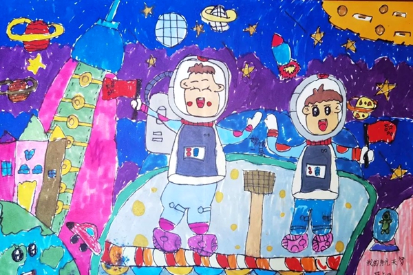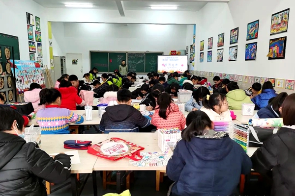 比赛现场,同学们手持绘笔,有的凝神静思,认真酝酿;有的胸有成竹,信笔勾勒;稚嫩的小手在画纸上细细描绘,尽情抒发对艺术、对生活和梦想的热爱之情。