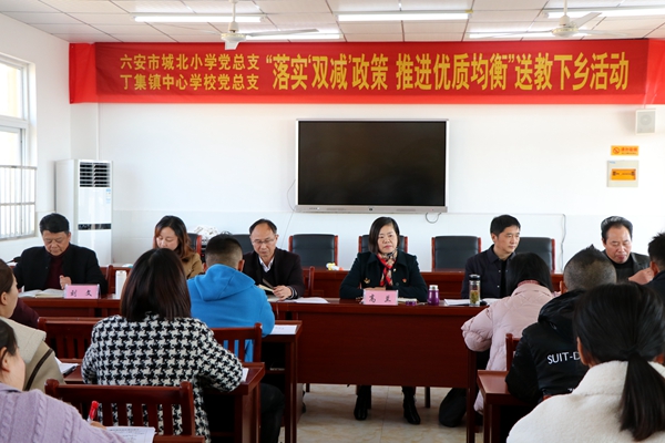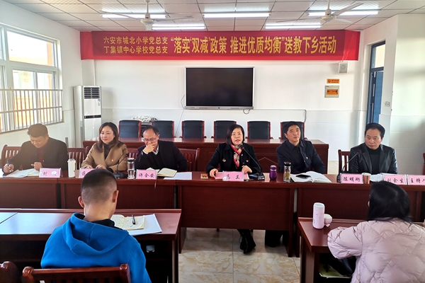 为确保‘双减’政策落地落实,提高教师教学能力和业务水平,促进城乡教育一体化发展, 2021年12月3日,六安市城北小学党总支与丁集镇中心学校党总支开展“落实‘双减’政策 推进优质均衡”送教下乡活动。