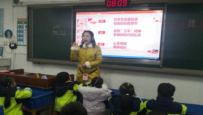 最后,各班召开“喜迎建党100周年”主题班队会,教育学生了解建党百年历程,延续红色根脉,引导学生扣好人生第一粒纽扣,争做新时代好少年。(张丽)