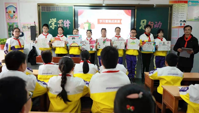 在学校党总支统一领导下,少先大队积极响应号召,发动各年级、各中队积极行动起来,开展学雷锋教育活动。 活动中,有的中队举办了“讲雷锋,赞雷锋”的故事会,有的中队组织学生开展了学唱《学习雷锋好榜样》歌曲,有的中队进行了“身边的雷锋”评选活动……