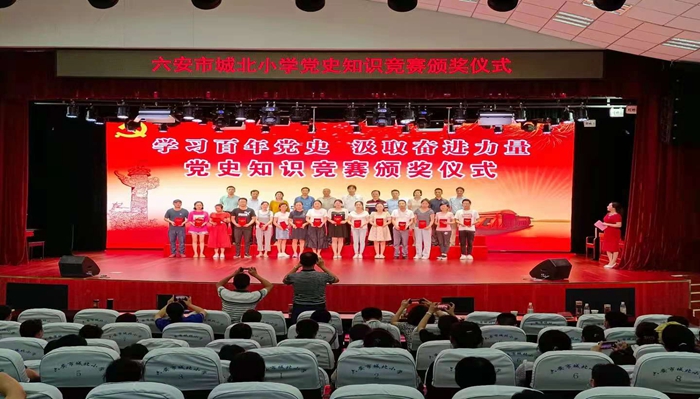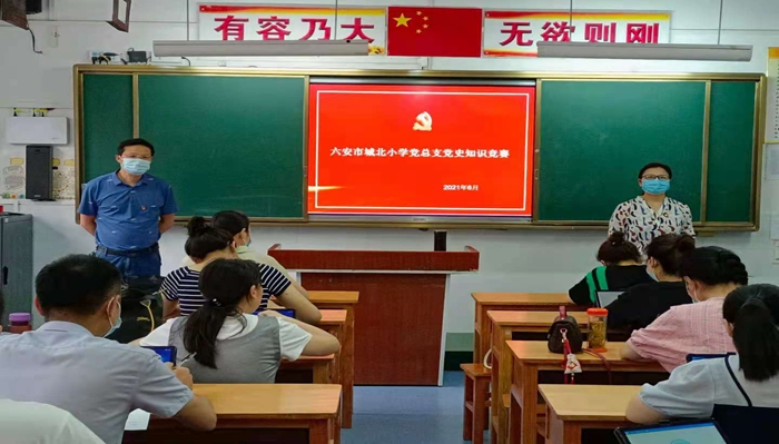 为庆祝中国共产党成立100周年,促进广大党员教师学史明理、学史增信、学史崇德、学史力行,从党史学习教育中汲取力量、勇担使命,6月12日下午,六安市城北小学党总支组织开展“学习百年党史,汲取奋进力量”党史知识竞赛活动。城北小学本部党支部、城北小学西校区党支部、城北小学清溪路校区党支部共80余名党员教师参加比赛。