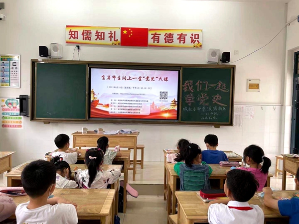 为深入贯彻习近平总书记关于深化思想政治理论课改革创新和“大思政课”的重要指示批示精神,全面落实习近平总书记在党史学习教育动员会上的重要讲话精神,根据市委、区委教育工委的统一部署,6月18日下午,六安市城北小学党总支组织全体师生观看“同上一堂‘党史’大课”活动。活动在六安市城北小学、城北小学西校区、城北小学清溪路校区各中队同步开展。