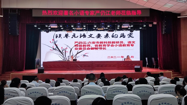 为了更好地了解统编教科书编写意图,提升小学语文教师的专业水平,2021年8月26日上午,城北小学语文学科教师培训活动在演播厅举行,六安市城北小学、城北小学西校区、城北小学清溪路校区全体语文教师参加活动。学校邀请了省教育学会小语教育专业委员会副秘书长、六安市教科院小语教研员、特级教师严仍江老师为大家作了《谈单元语文要素的落实》专题讲座。