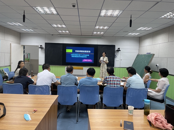 承担市级电教课题《整校推进教师信息化教学能力的策略研究》、《智慧环境下提升小学语文教学高效性研究》和《智慧课堂环境下小学生英语阅读课的教学研究策略》的负责人谢光玲、刘琴、王欢老师分别作了结题报告。她们从课题提出的背景,研究的目标、方法、过程、结论以及成果的推广、反思和启示等方面进行了细致地阐述,结合PPT,图文并茂地展现了课题组这两年多以来所做的研究、开展的活动以及目标达成情况。
