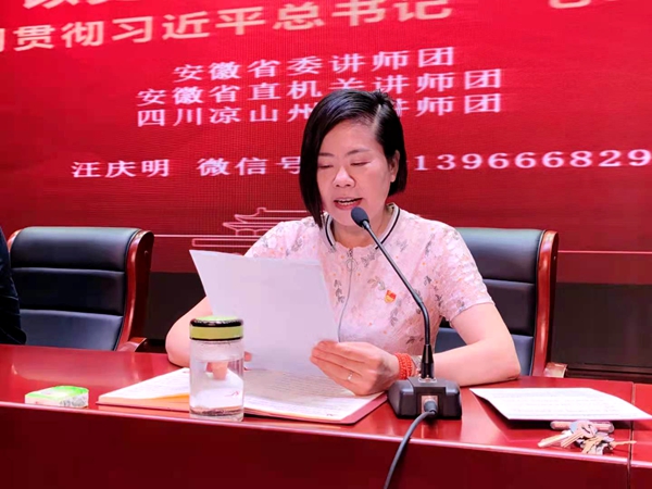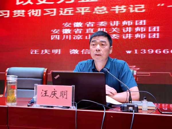 报告会邀请安徽省委讲师团、安徽省直机关讲师团宣讲专家,四川凉山州委讲师团宣讲专家汪庆明教授主讲,由裕安区委教育工委委员、六安市城北小学党总支书记、校长高兰主持。六安市城北小学、城北小学西校区、城北小学清溪路校区全体教师聆听学习。