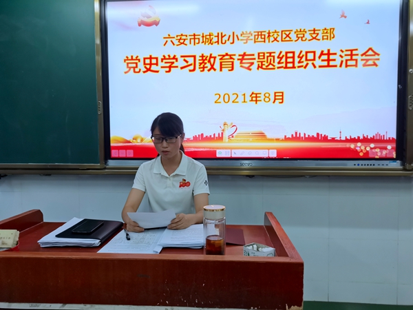 根据区委教育工委的统一部署,近日,六安市城北小学本部党支部、城北小学西校区党支部、城北小学清溪路校区党支部分别召开了党史学习教育专题组织生活会。会议分别由党支部书记张敏、张仁朋和周先宏主持,各党支部全体党员参加活动。