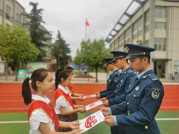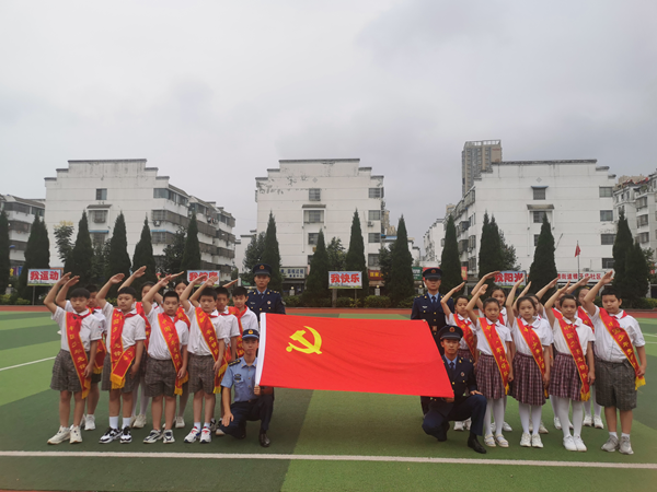 升旗仪式结束后,部队官兵代表与孩子们进行了短暂的互动,从讲述红船故事、赠送红船剪纸到“与党旗合影”,鼓励少先队员们热爱国旗,好好学习,用实际行动捍卫国旗的尊严,践行爱国的志向。