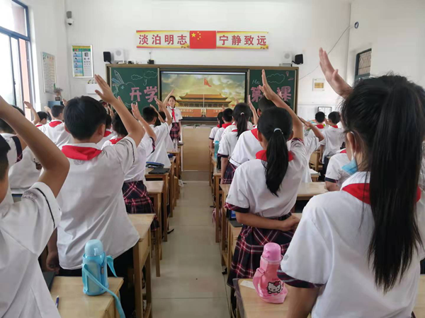 最后,裕安区委教育工委委员、城北小学党总支书记、校长高兰为同学们作了新学期的第一次讲话。高校长以“奥运精神”“航天精神”“抗疫精神”为切入点,深情勉励城北学子传承先锋精神,从小立志向,好好学习,努力进取,用汗水照亮梦想,用实际行动践行“强国梦”。