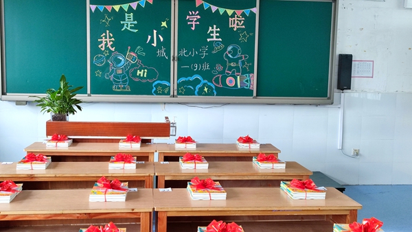 随后,一年级的班主任为孩子们分发了《城北小学新生成长手册》,并进行“入学第一课”教育,教导学生知晓日常基本行为规范,促进孩子们角色的转化,帮助孩子们融入校园,更好地适应小学生活。
