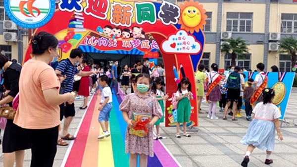为更好地促进幼小衔接,让一年级新生有一份美好的入学回忆和强烈的身份认同感,六安市城北小学于9月4日上午隆重举行2021级新生“童心向党 筑梦成长”入学仪式。