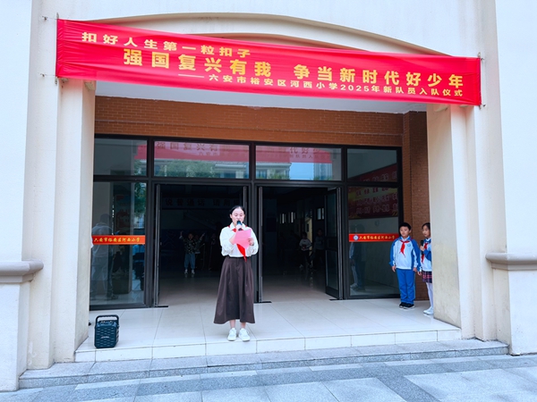 此次入队仪式不仅让新队员们感受到了少先队的荣誉感和使命感,也激发了全体队员的爱国热情。相信在红领巾的指引下,河西小学的新队员们必将茁壮成长,在星星火炬的照耀下,走向更加灿烂辉煌的明天!(孙平平)