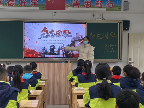 升旗仪式结束后,各中队有序开展国家公祭日主题班队会。辅导员们借助图片、视频等鲜活资料,带领队员们重温十四年抗战的峥嵘岁月,引导大家深刻感悟和平的来之不易。队员们认真聆听、踊跃分享感悟,纷纷表示要珍惜当下的幸福生活,勤奋学习,将来报效祖国。