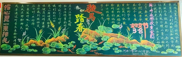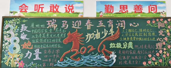 春意盎然,马蹄声疾。为深入推进“五育”并举,营造积极向上的校园文化氛围,3月13日下午,六安市城北小学教育集团河西小学、金马小学开展了春学期第一期黑板报检查评比活动。本次黑板报以“骏马踏春 五育赋能好少年”为核心主题,各年级围绕主题,结合本阶段德育重点与时节特点,精心构思,巧妙绘制。