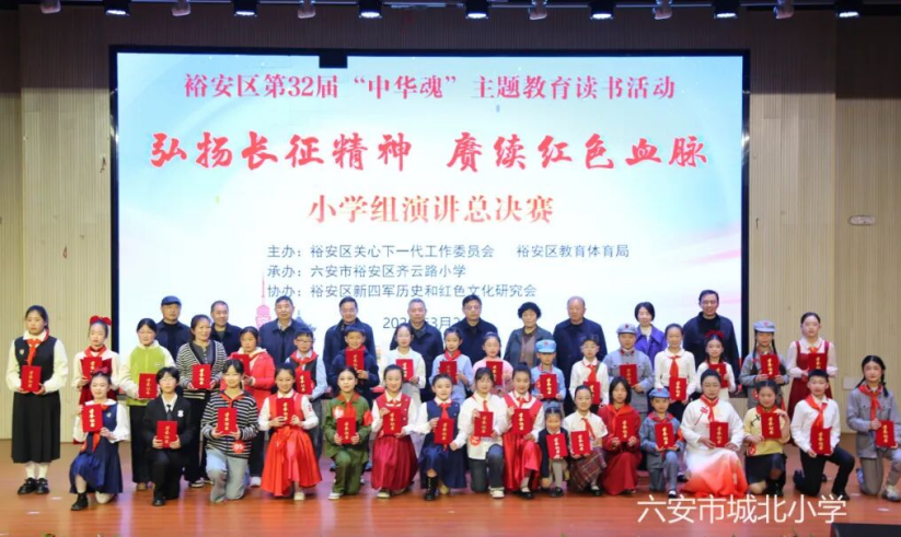 3月26日上午,以“弘扬长征精神,赓续红色血脉”为主题的裕安区第32届“中华魂”主题教育读书活动演讲比赛小学组总决赛在齐云路小学成功举办。来自全区各小学的35名选手齐聚赛场,以演讲 悟长征精神,以童心传红色薪火。经过激烈的角逐,六安市城北小学赵艺斐同学以全场第一名的佳绩荣获特等奖,六安市城北小学教育集团裕安区河西小学魏正熙同学、金马小学江欣瑶同学荣获二等奖。