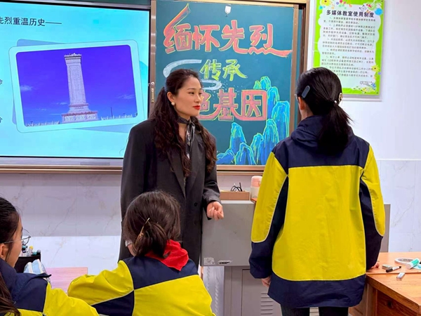 下午两点,活动在大队辅导员钮士兰讲述的本地革命英雄故事中拉开序幕。孩子们安静地听着,那些发生在同一片土地上的烽火岁月,让抽象的历史变得触手可及。“原来我们家乡也出过这样的英雄。”一位学生在听完故事后轻声说道。清明节不仅是祭奠先人的日子,更是连接过去与现在的精神纽带——这一理解在孩子们心中悄然生根。
