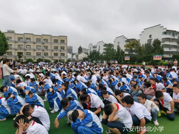 六安市城北小学开展“9·18”防空袭疏散演练活动
