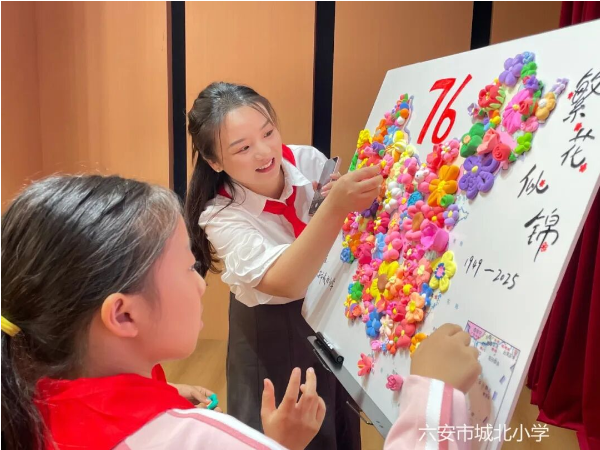 为庆祝中华人民共和国成立76周年,纪念中国人民抗日战争胜利80周年,铸牢中华民族共同体意识,9月27日,六安市城北小学开展了“传承红色基因 共筑团结初心”民族团结进步月主题活动。