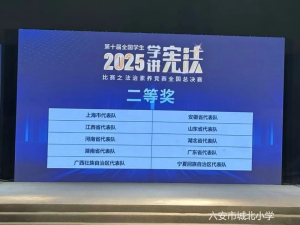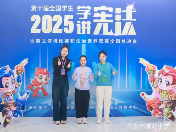 近日,第十届全国学生“学宪法 讲宪法”活动在北京顺利闭幕。来自全国31个省(自治区、直辖市)、新疆生产建设兵团及香港、澳门特别行政区的近300名优秀选手齐聚北京,同台竞技。六安市城北小学六(4)班孙雨欣同学作为安徽省小学组代表出征全国总决赛,斩获团体二等奖与个人二等奖。这是我校在又一个国家级重大赛事上的突破。